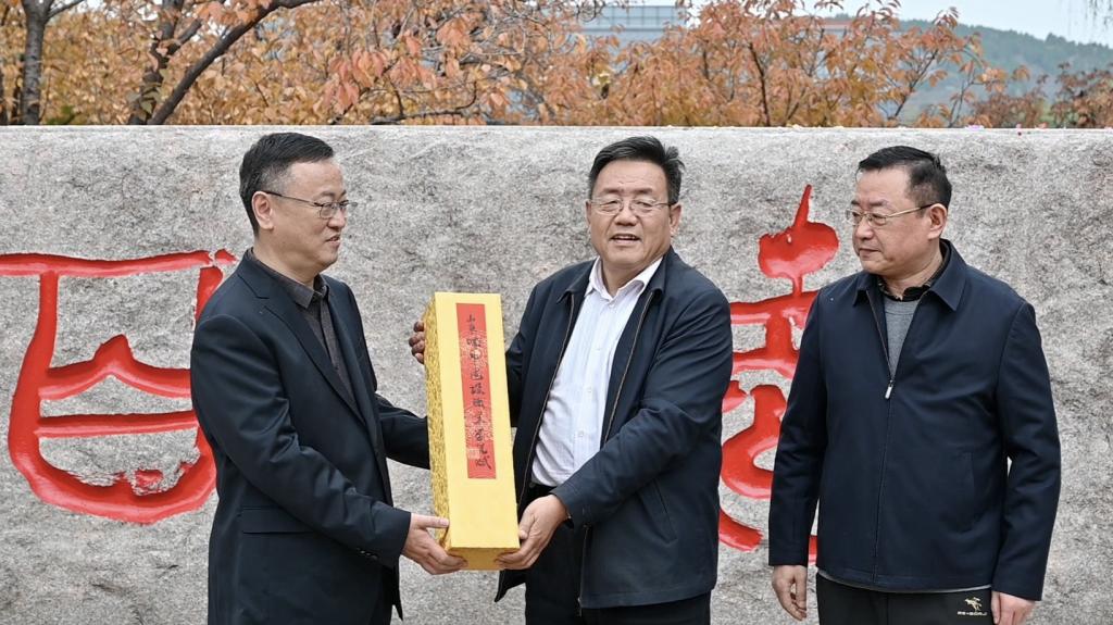 活动现场,与会领导共同为“城建赋”揭幕。随后,杜宏春、郑志群向学校捐赠了“城建赋”原著;学校领导向王峰、杜宏春、郑志群颁发捐赠证书和感谢信。济宁校友代表王峰在发言中表示,“城建赋”是集文学、书法、雕刻于一体的艺术精品,寄托了济宁校友对母校的深深眷恋和美好祝愿,更是学校办学历史的一座丰碑,是对师道、师德的赞颂,是对名师荟萃、高足芬芳、砥志化城的自豪。
